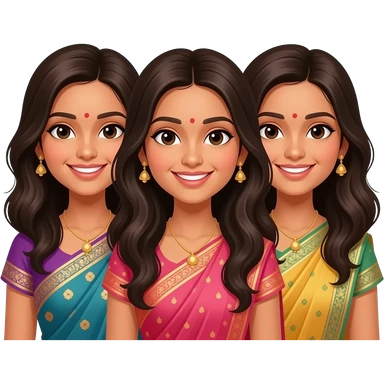 Three girl friends with happy faces Indian look Indian look one 45 years old another two 35 years different indian looks emoji | AI Emoji Generator