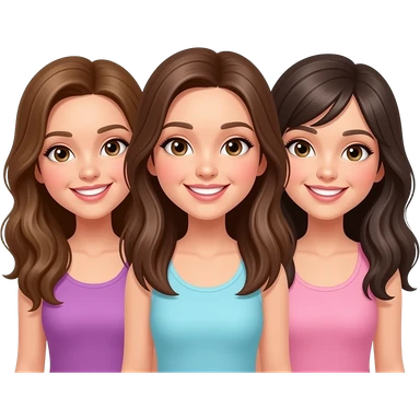 Three girl friends with straight hair one have black hair and two have brown hair emoji