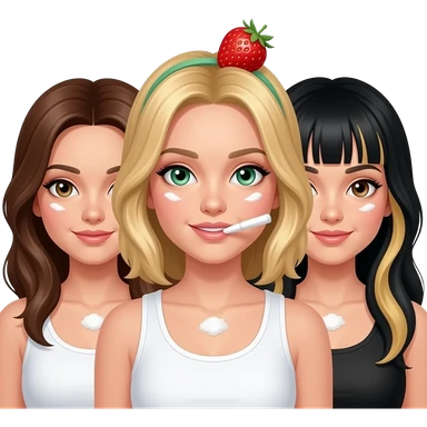 Three girls doing cocaine. One dirty blonde hair and green eyes with white tank top, one brunette hair, and one with brown eyes and black hair and blonde highlights in hair emoji | AI Emoji Generator