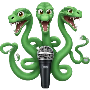 three-headed hydra holding a shure sm58 microphone in its paws emoji