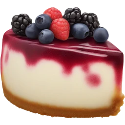Three layered berry cheesecake slice topped with whip cream emoji | AI Emoji Generator
