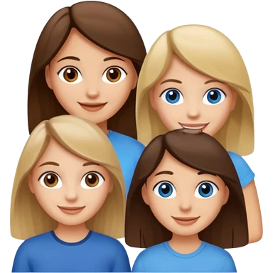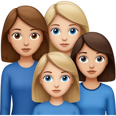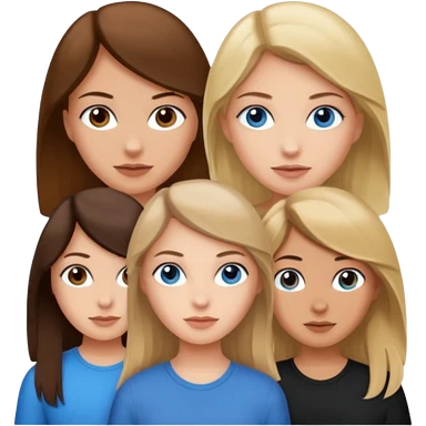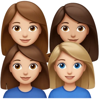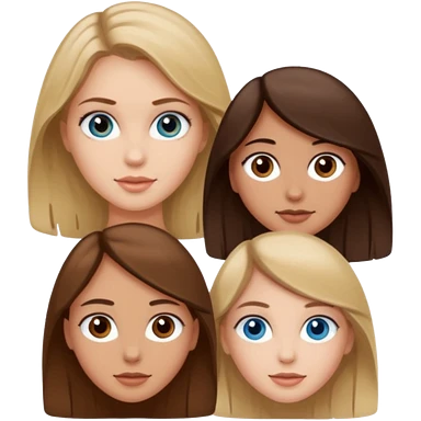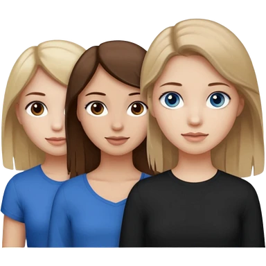 three girl friends; one who is white, has brown hair and brown eyes; one who is dirty blonde with blue eyes; one who is tan with dark brown hair and dark brown eyes emoji