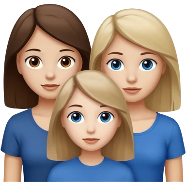 three friends: one girl who is white, has brown hair and brown eyes; one girl who is dirty blonde with blue eyes; one girl who is tan with dark brown hair and dark brown eyes emoji