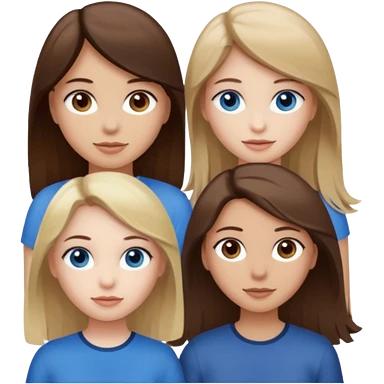 three people who are friends and the features are as follows: one girl who is white, has brown hair and brown eyes; one girl who is dirty blonde with blue eyes; one girl who is tan with dark brown hair and dark brown eyes emoji