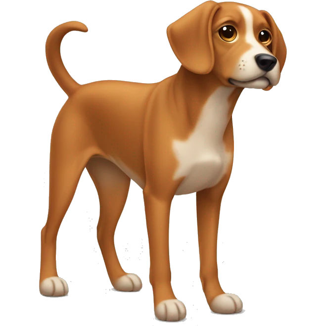 Three legged dog that is medium size with floppy ears and is orange ish brown color emoji | AI Emoji Generator