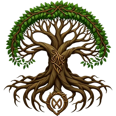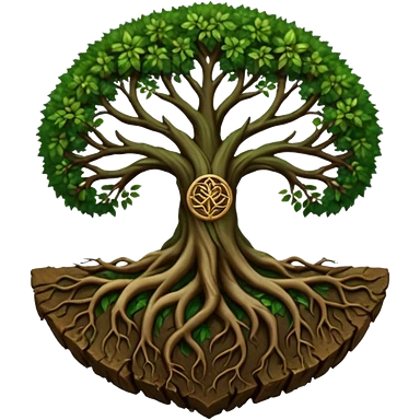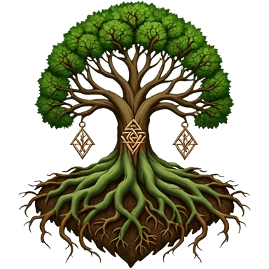 Tree roots forming a sigil shape, earth magic symbolism, deep greens and browns emoji