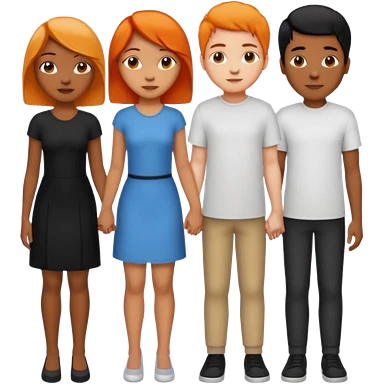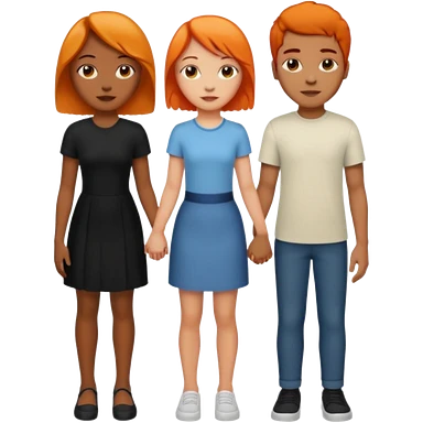 Three people holding hands first people is a female light skin have medium length half black half orange hair the second person is tall African American male short hair and the third people the third person is a female medium length black hair light skinemoji
