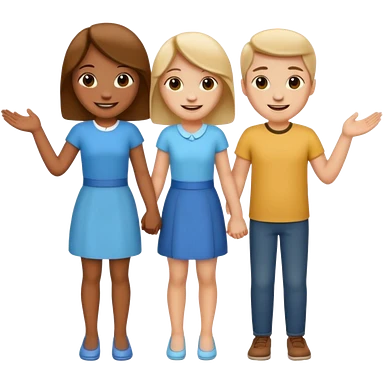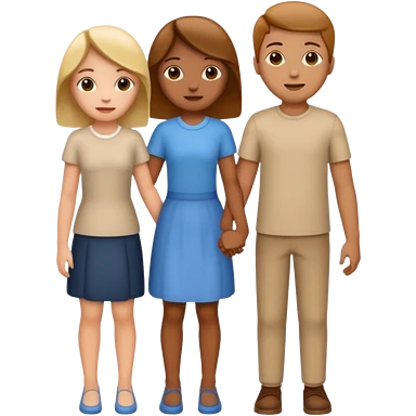 Three people holding hands first people is a female light skin have medium length half black half orange hair the second person is tall African American male short hair and the third people the third person is a female medium length black hair light skin emoji