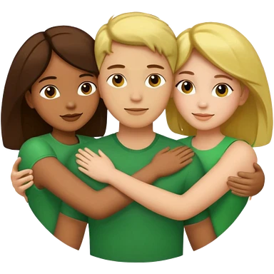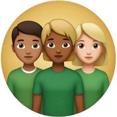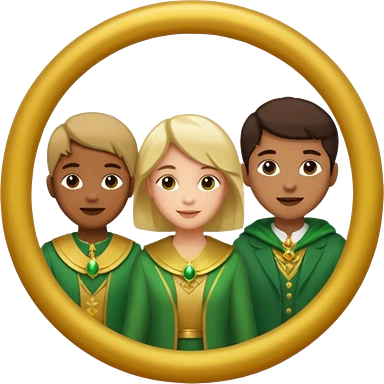 three people with a curcle that unites them with golden and green colours emoji | AI Emoji Generator