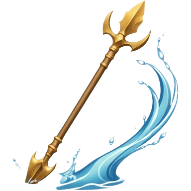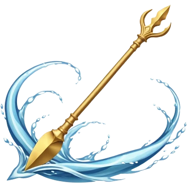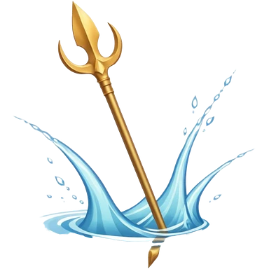 Golden three-pronged spear, water swirling around it, symbol of the sea. emoji