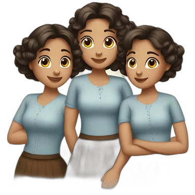 Three sisters, light skin with long dark brown hair, tan skin long black hair, tan skin dark brown short hair, white tee emoji