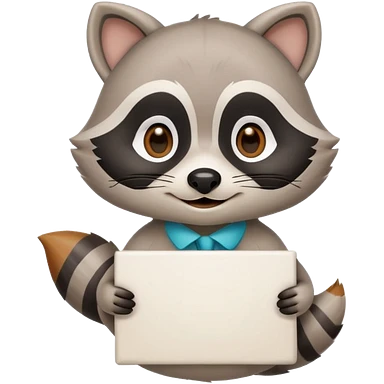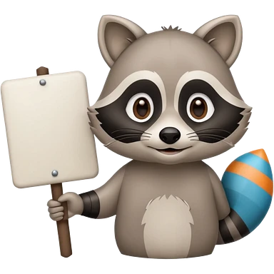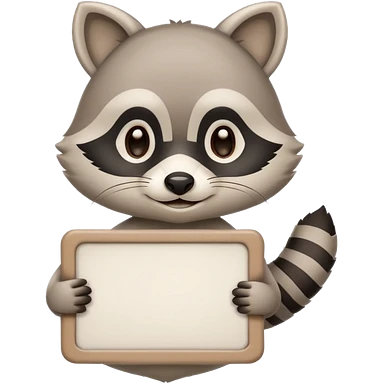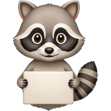 soft raccoon mascot holding a blank sign, neutral calm colors, gentle smile, rounded shapes, clean outline, safe educational style emoji