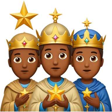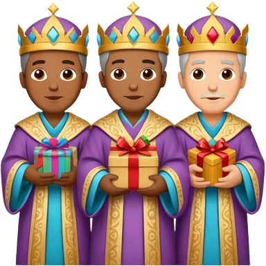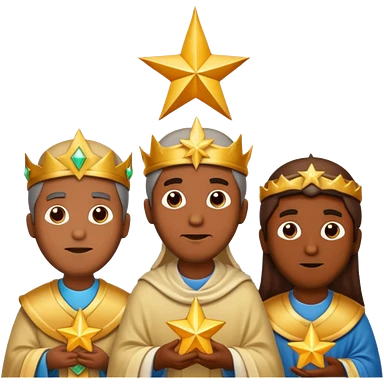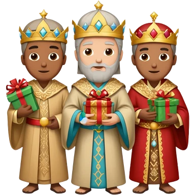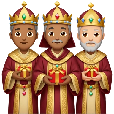 three wise men, one is blonde, one is African American, one is red haired emoji