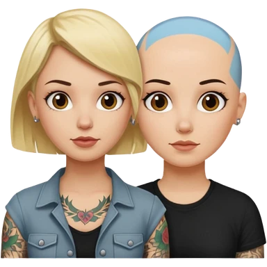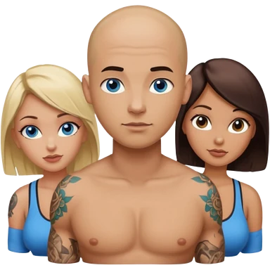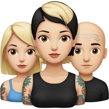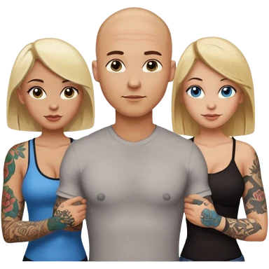 throuple blonde female brunette female with tattoed bald male emoji | AI Emoji Generator
