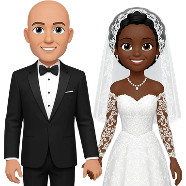 Wedding emoji with black female and light skinned bald male wedding emoji