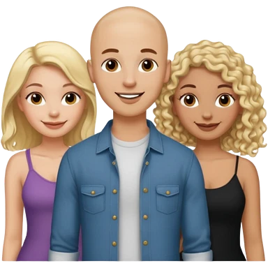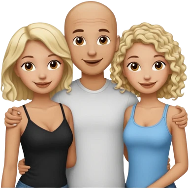 throuple tattooed bald boyfriend with blonde long hair female and another curly short haired brunette big boobs emoji | AI Emoji Generator