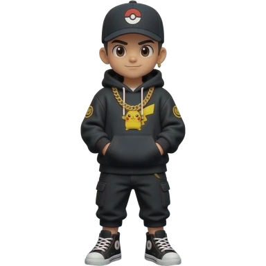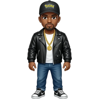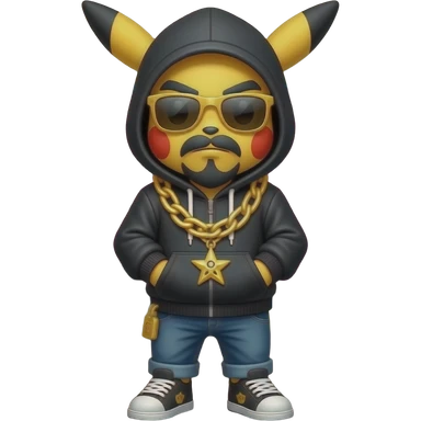 Russian strong thug wearing gold chain with black hair and short beard, mid-fade hairstyle, wearing designer hoodie emoji