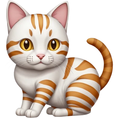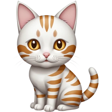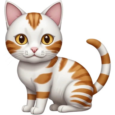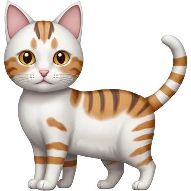 a white cat with brown tabby patches on the top of his head (ears) a patch on its side/arm and a striped tail the rest of the body is bright white emoji