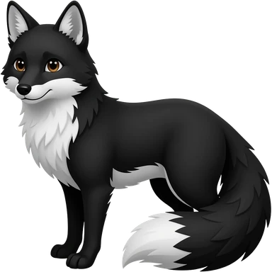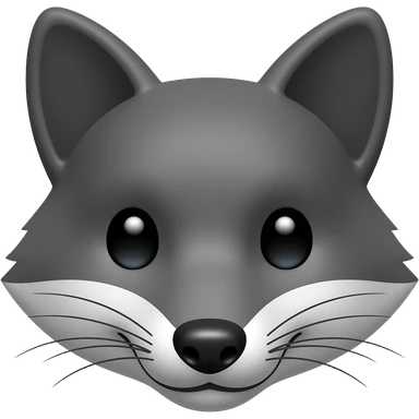 Grey furry fox with a black coat, blue eyes, and a small fringe of black hair, smiling emoji