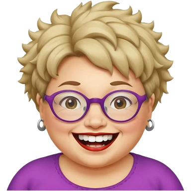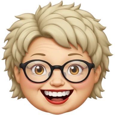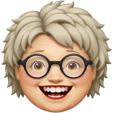short fat lady with glasses ,crooked teeth and crazt hair emoji