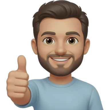 À short beard with smiling face, smiling eyes and thumps up emoji