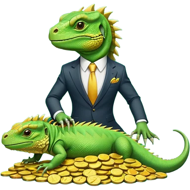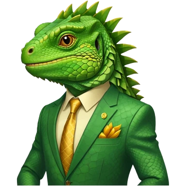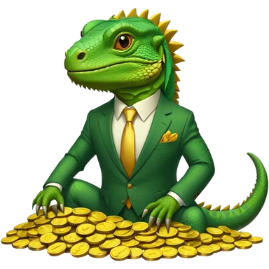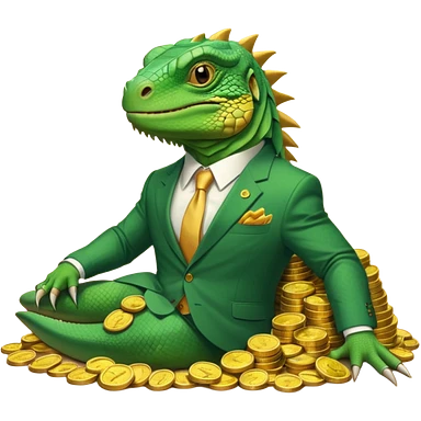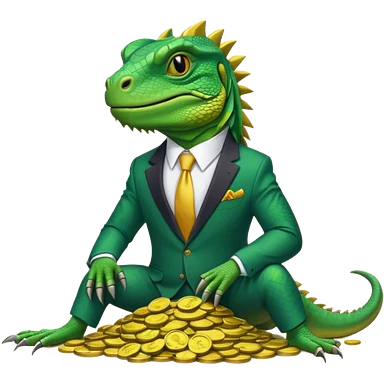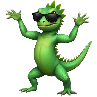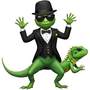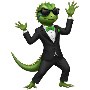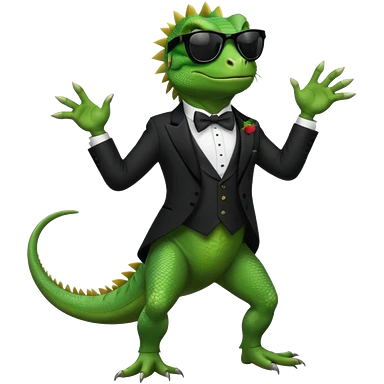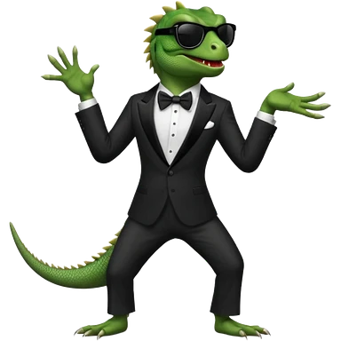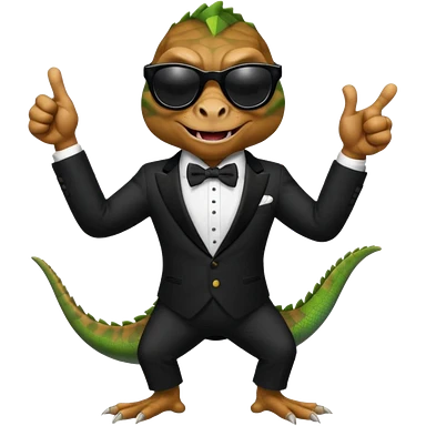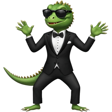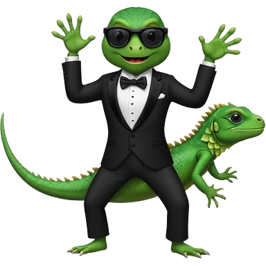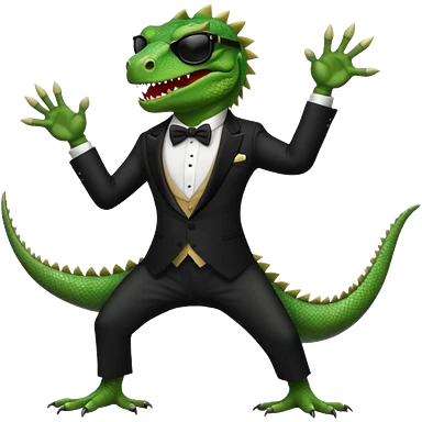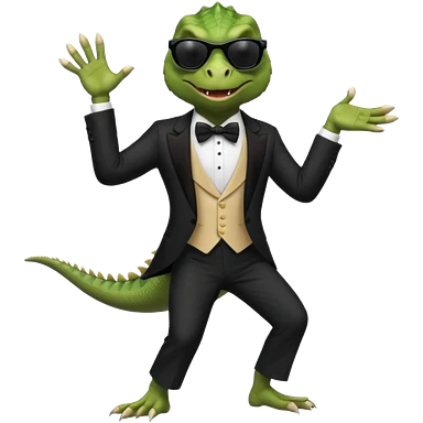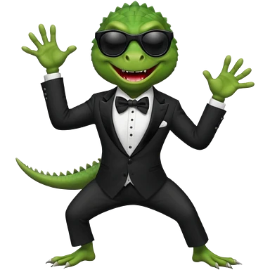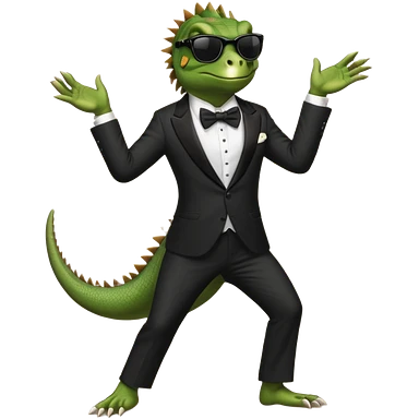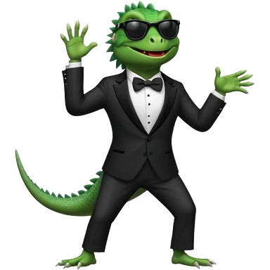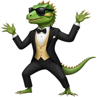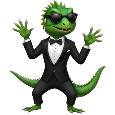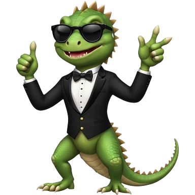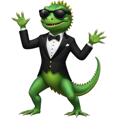 capitalist iguana banker in tuxedo and black sunglasses dancing emoji