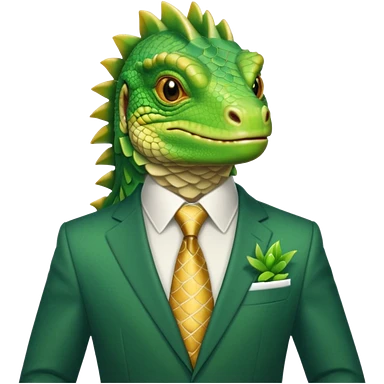 capitalist iguana in tuxedo with black sunglasses dancing emoji