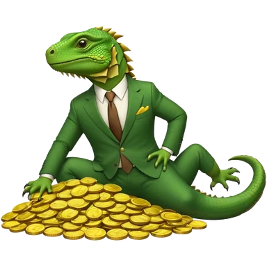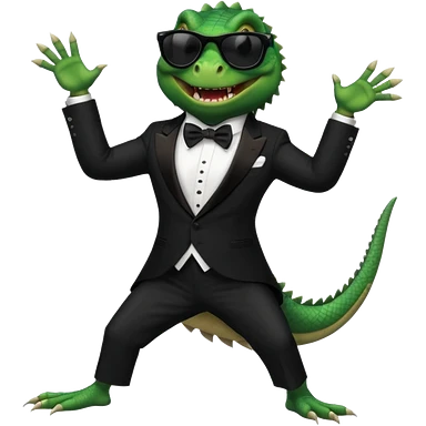 capitalist iguana banker in tuxedo and black sunglasses dancing crazy emoji