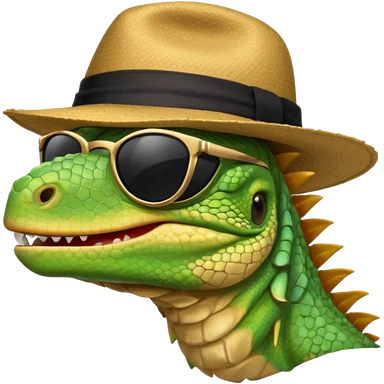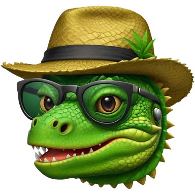 capitalist iguana head with black sunglasses smiling sarcastically emoji