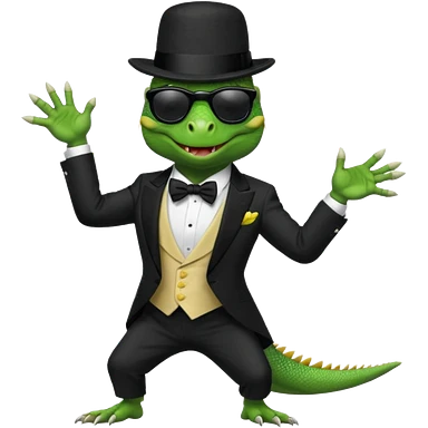 capitalist iguana in tuxedo and hat black sunglasses dancing emoji