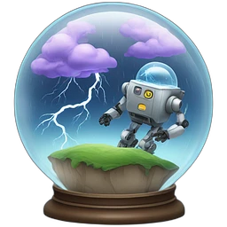 thunderstorm in a glass globe with a robot emoji