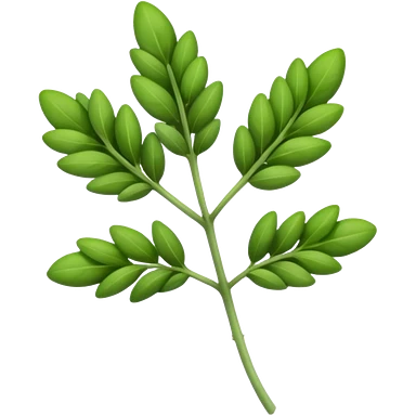 fresh thyme sprig, thin green stems, clusters of tiny oval deep green leaves, delicate, slightly woody base, dense evenly spaced leaves, soft lighting, emoji scale emoji