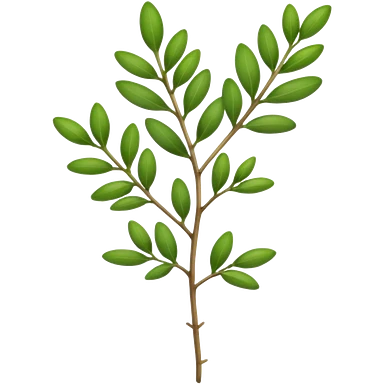 sprig of thyme, slender woody stems, tiny deep green oval leaves in dense pairs along branches, crisp and delicate texture, aromatic look, soft lighting, emoji scale emoji