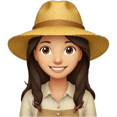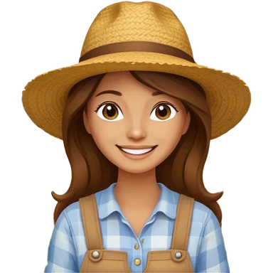 Crea una granjera pelo negro ojos azules piel blanca y un poco gordita emoji