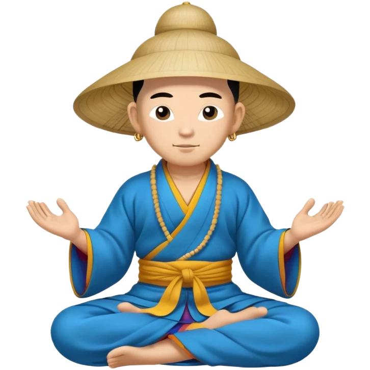 Tibetan monk in Asian hat floating in lotus pose in blue kimono emoji | AI Emoji Generator
