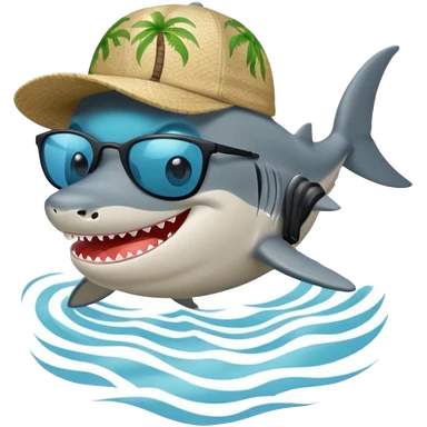 Tiburón playero con camisa hawaiana, lentes negros, y una gorra al revés emoji