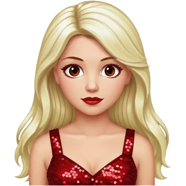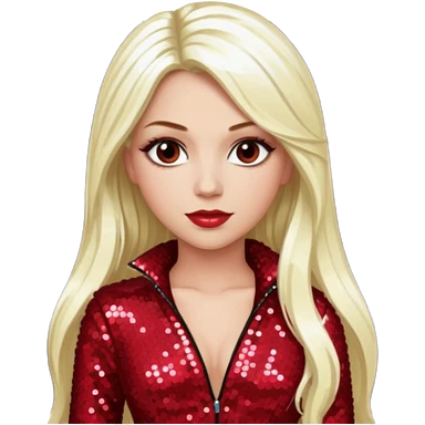 Tiffany Valentine with long platinum blonde hair, dark red sequin outfit emoji