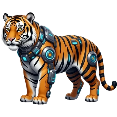 cyberpunk tiger face with neon elements and cybernetic implants for Twitch emote emoji
