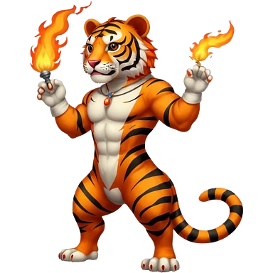 tiger vintage-circus-performer-spitting-fire full body emoji