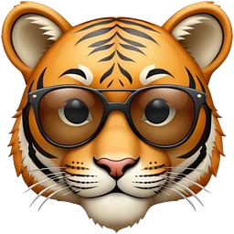 tiger face with wayfarer sunglasses black lens, cool expression emoji