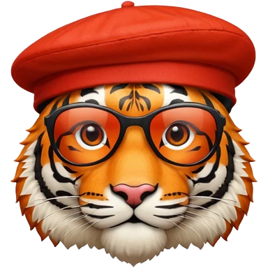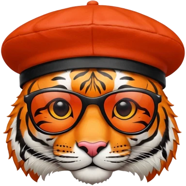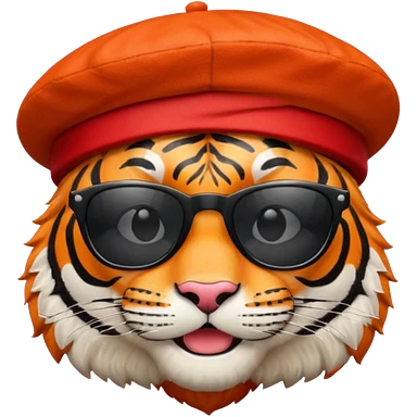 tiger in sunglasses with red berets emoji | AI Emoji Generator