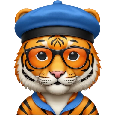 tiger in sunglasses with blue berets emoji