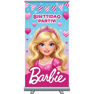 blue pink birthday party standing banner, transparent background inspired by barbie colour pallete emoji