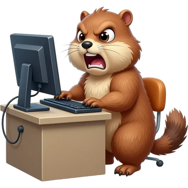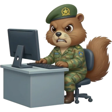 Marmotte enragé en tenu militaire travaillant devant ordinateur emoji