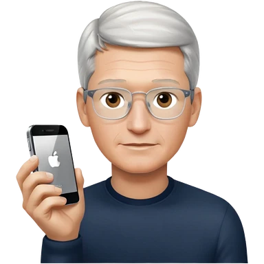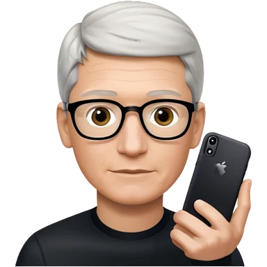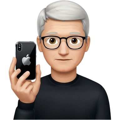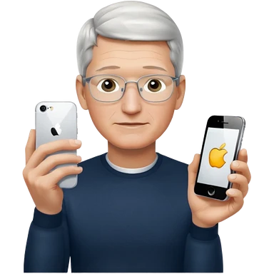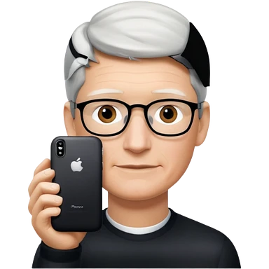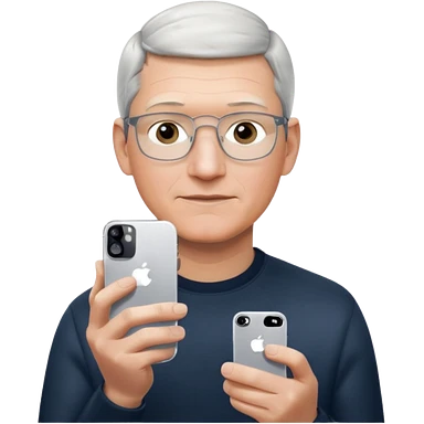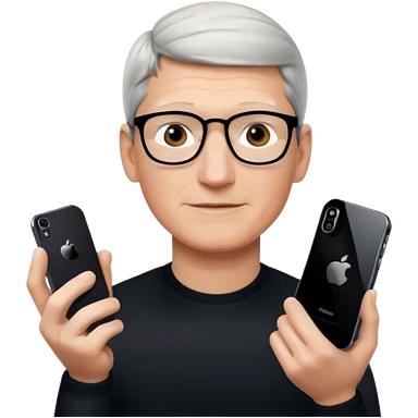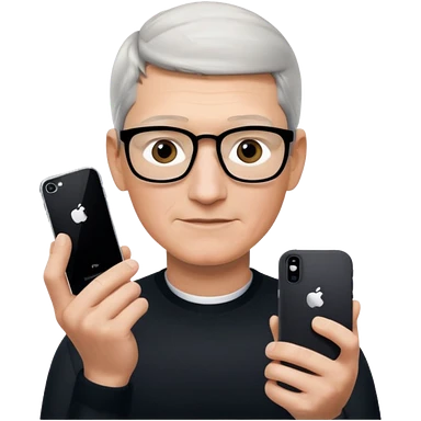 Tim Cook wiyh iphoine into his hands with one iphone the neweswt one emoji