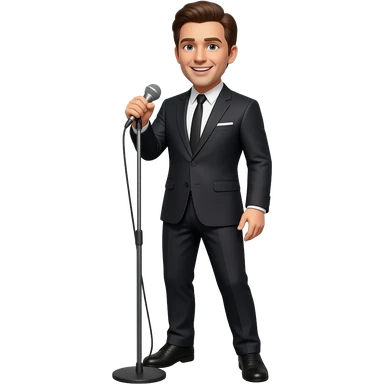 tim robinson in suit singing into microphone on stand (full body, ios17) emoji