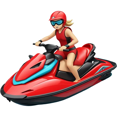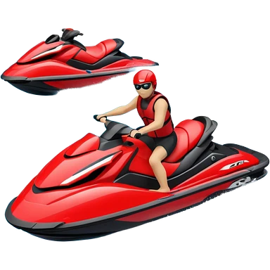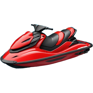 jet ski (red black and white all in the same amount. maybe a red a bit more dominant) on the sea. show the sea under the jet ski - blue with turquoise. no sky - white background instead. DO NOT REMOVE THE SEA AND THE WHITE WHEN FINALIZING! NO ONE ON THE JET SKI emoji