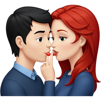 white man with black hair and redhead woman blowing eachother a kiss emoji