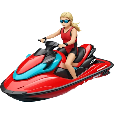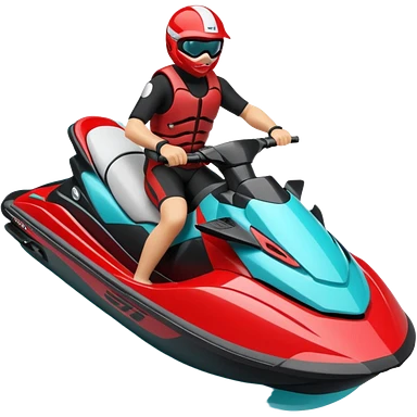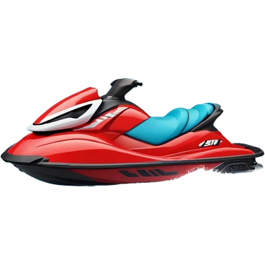 jet ski (red black and white all in the same amount. maybe a red a bit more dominant) on the sea. show the sea under the jet ski - blue with turquoise. no sky - white background instead. DO NOT REMOVE THE SEA AND THE WHITE WHEN FINALIZING! NO ONE IS ON THE JET SKI emoji