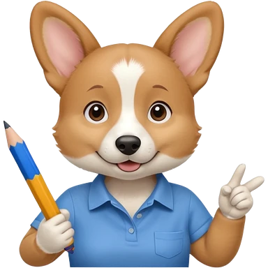 perrita caricatura gorgi gales trabajadora con camiseta celeste apuntando con un lapiz hacia el costado izquierdo emoji